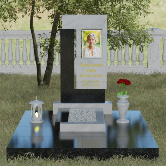 Архитектурное решение стелы предусматривает выделенную зону для портрета, которая может быть оформлена как в виде классической фотокерамики в овальной нише, так и методом художественной лазерной гравировки. Золоченая или вырубленная в камне надпись располагается на контрастном фоне, что обеспечивает отличную читаемость даже на расстоянии. Мы предлагаем этот проект в 8 уникальных цветовых исполнениях, что позволяет наделить мемориал индивидуальным характером. Вы можете выбрать глубокий черный гранит Габбро-диабаз, благородный серо-белый Мансуровский гранит, насыщенный красный Лезниковский, строгий Дымовский, изысканный Блю Перл с его синими искрами, текстурный Амфиболит, зеленый Балтик Грин или белоснежный мрамор Тассо.