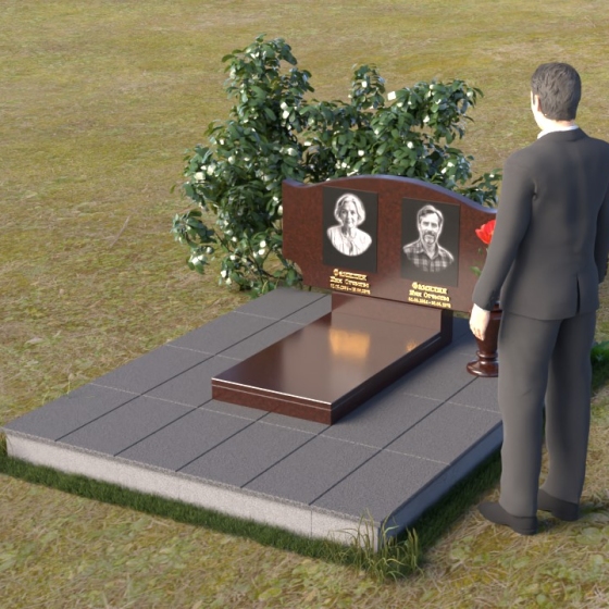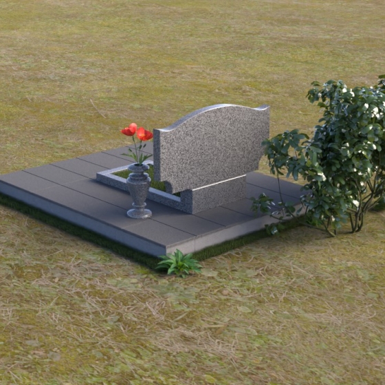 Этот гранитный монумент привлекает внимание своей плавной, обтекаемой формой. Верхняя часть надгробного сооружения представляет собой дугу с легким изгибом, напоминающим колыбель или волну, бережно укрывающую покой. Боковые грани скруглены, что придает памятнику мягкость и умиротворенность. Фаска, аккуратно снятая по периметру, подчеркивает четкость линий и добавляет изделию изысканности. Нижняя часть монумента выполнена в форме прямоугольника, создавая устойчивое основание и визуальный баланс. Дополнительная горизонтальная плита, расположенная на основании, добавляет композиции завершенность и предоставляет место для нанесения эпитафий или размещения цветов.