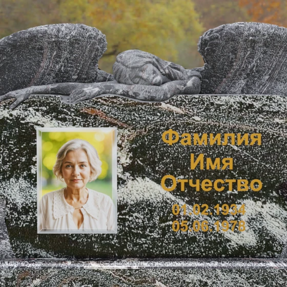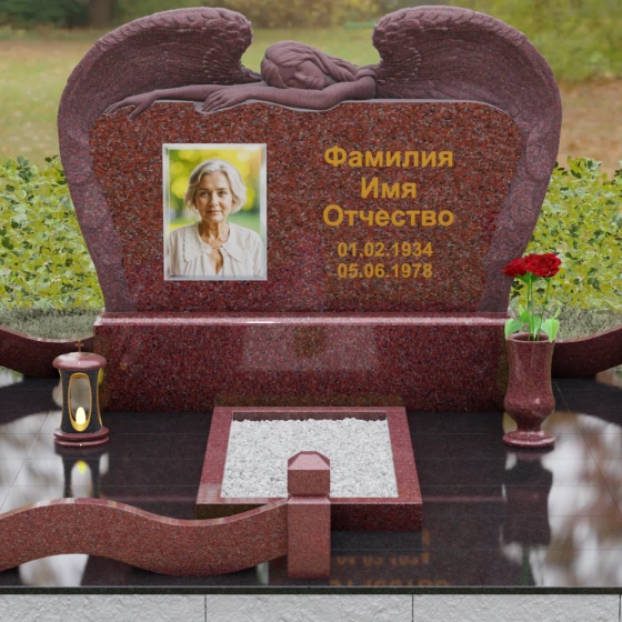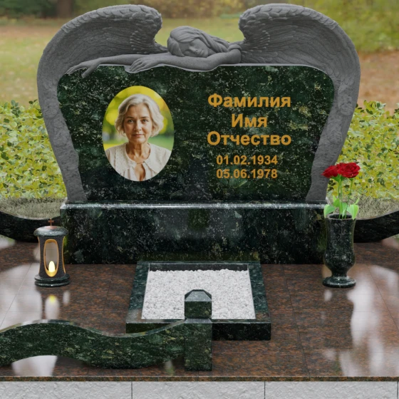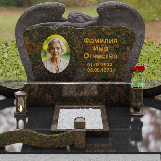 Оформление: Благодаря большой площади горизонтальной плиты, эта модель идеально подходит для размещения крупного художественного портрета и каллиграфических надписей. Мы рекомендуем использовать глубокую гравировку с последующим покрытием сусальным золотом или «под золото», что в сочетании с темными видами гранита подчеркнет статусность и величие монумента.