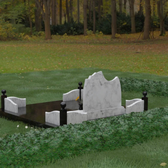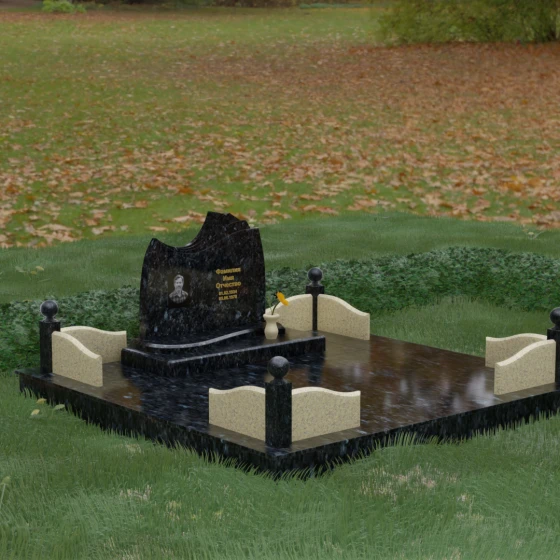 Данная модель предполагает комплексный подход к оформлению захоронения, что превращает участок в аккуратное и благородное место памяти. Благоустройство включает в себя несколько ключевых элементов: