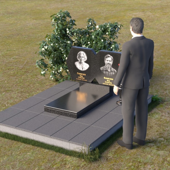 Форма этого памятника, состоящая из двух соединенных частей, символизирует неразрывную связь двух любящих сердец, единство душ, которое не может быть разрушено даже смертью. Мягкие линии и сглаженные углы говорят о покое и умиротворении, которые обретает душа после земной жизни. Полированный гранит, отражая свет, символизирует светлую память и надежду на вечную жизнь. Строгая геометрия нижней части стелы подчеркивает важность земного пути и тех ценностей, которые человек пронес через свою жизнь. В целом, этот памятник создает ощущение защиты и умиротворения, напоминая о вечности и непреходящей ценности человеческой жизни.