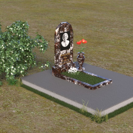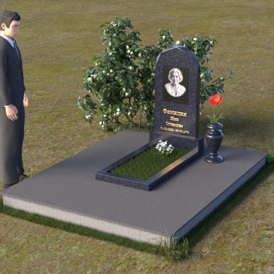 Форма стелы ПВ 069 предоставляет прекрасные возможности для размещения портрета и памятной надписи. Изображение можно расположить в верхней части стелы, где оно будет хорошо освещено и заметно. Золотое тиснение имени и дат жизни на темном фоне гранита создает элегантный контраст и добавляет торжественности. Вертикальное расположение текста гармонично сочетается с формой стелы и позволяет разместить достаточное количество информации, чтобы выразить всю глубину вашей любви и скорби. Рядом со стелой можно установить небольшую вазу для цветов, которая станет символом неувядающей памяти и заботы. Маленькая гранитная плита, расположенная перед стелой, может служить местом для возложения венков или памятных вещей.