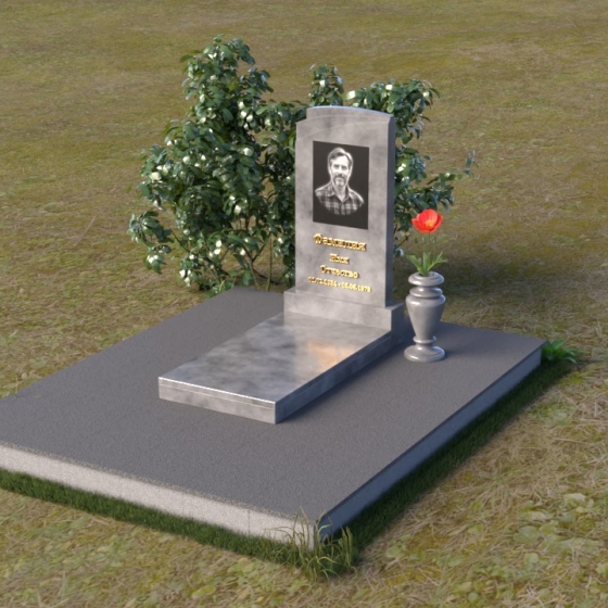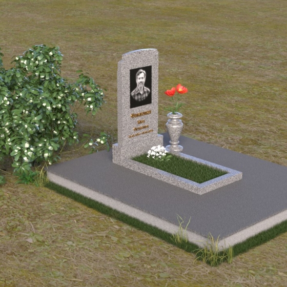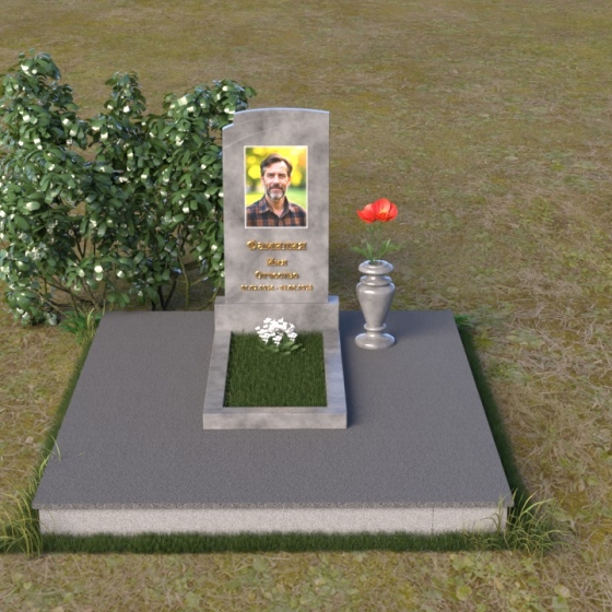 Мемориальная композиция ПВ 075 представляет собой элегантное и сдержанное решение, в котором гармонично сочетаются строгие геометрические формы и отполированные поверхности. Вертикальная стела, выполненная из прочного камня, имеет прямоугольную форму с мягко скругленными углами, что придает ей визуальную мягкость. На стеле расположено гравированное изображение усопшего, выполненное с высокой степенью детализации. Ниже портрета располагается надпись с именем и датами жизни, выполненная элегантным шрифтом. Горизонтальная плита, расположенная перед стелой, имеет идеально отполированную поверхность, отражающую небо и окружающий пейзаж, создавая ощущение глубины и покоя. Венчает композицию небольшая ваза из того же камня, предназначенная для цветов.