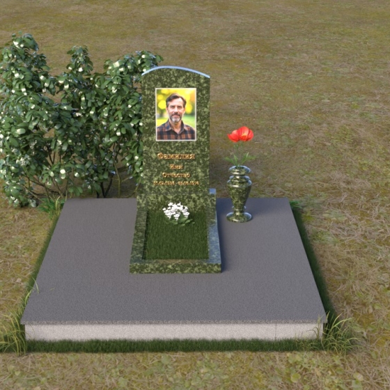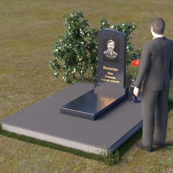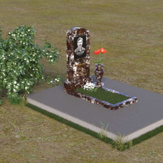 Оформление: Для этой формы оптимально подойдет гравировка портрета в верхней части стелы, выполненная с высокой детализацией. Ниже можно разместить ФИО усопшего и даты жизни, используя строгий, элегантный шрифт. Рекомендуем избегать излишней декоративности в надписях, чтобы сохранить лаконичный стиль композиции.