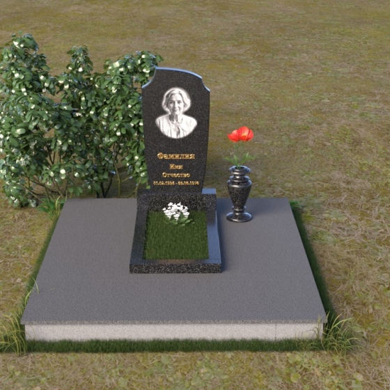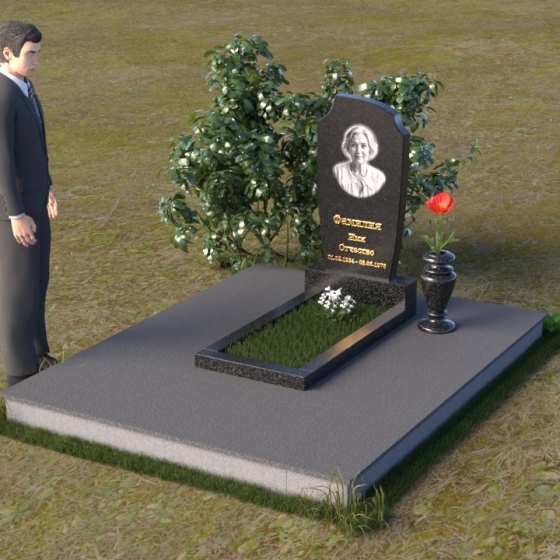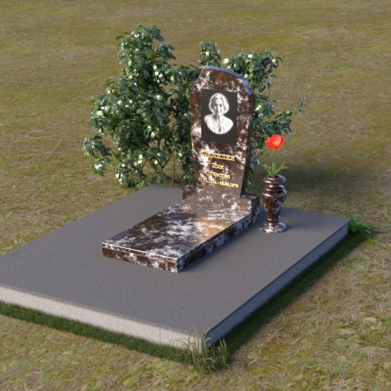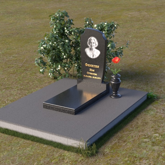 Мягкие, округлые формы стелы символизируют покой, умиротворение и вечную память. Отсутствие острых углов и резких переходов создает ощущение гармонии и завершенности. Прямоугольная форма плиты, в свою очередь, олицетворяет стабильность, надежность и незыблемость памяти об ушедшем. Композиция в целом создает образ защиты и заботы, словно оберегая покой усопшего от невзгод. Зеркальная полировка поверхности камня отражает свет, символизируя светлую память и надежду на вечную жизнь.