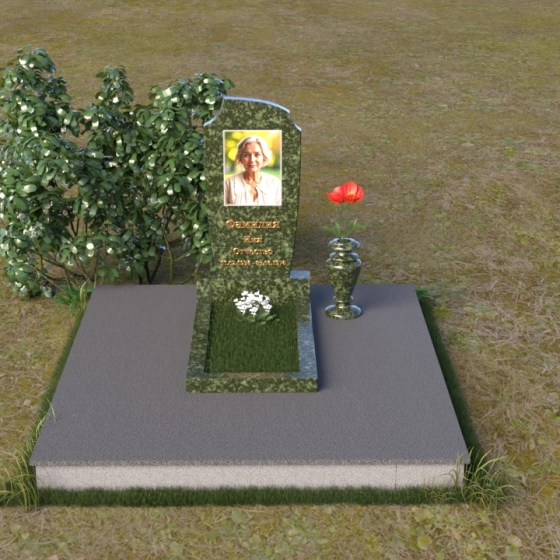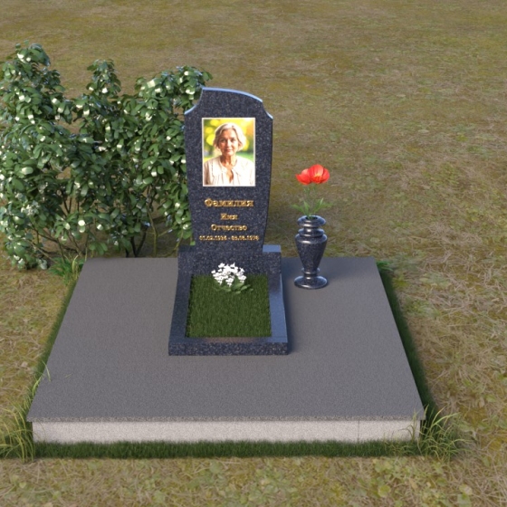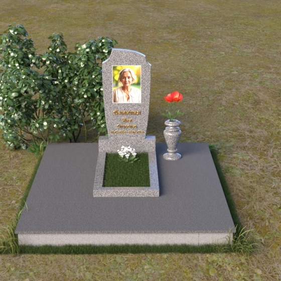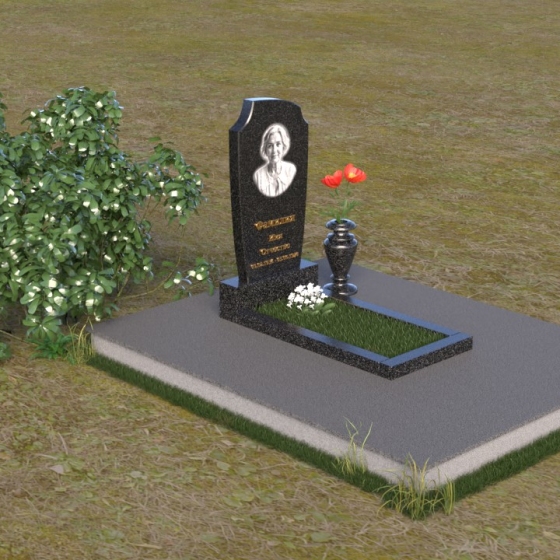 Этот надгробие из натурального камня представляет собой элегантную и лаконичную композицию, где каждый элемент тщательно продуман и исполнен с высоким мастерством. Стела памятника устремлена ввысь, ее верхняя часть имеет мягкие, скругленные очертания, словно приглашая взгляд к небу. Боковые грани стелы аккуратно скошены, что придает ей визуальную легкость и изящество. На лицевой стороне стелы размещено портретное изображение усопшего, выполненное с фотографической точностью. Под портретом выгравированы имя, отчество и фамилия, а также даты жизни. Нижняя часть стелы переходит в горизонтальную плиту, которая служит основанием для цветника или других декоративных элементов. Грани плиты также обработаны с особой тщательностью, создавая четкий и выразительный контур.