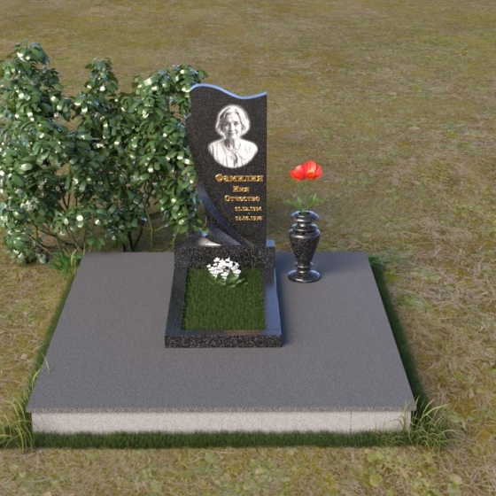 Основание памятника состоит из двух частей: горизонтальной плиты и вертикальной подставки под стелу. Горизонтальная плита имеет строгую прямоугольную форму и служит надежным фундаментом для всей конструкции. Вертикальная подставка, расположенная на плите, имеет полированную поверхность, которая отражает свет и создает эффект парения стелы над землей. Контраст между матовой поверхностью горизонтальной плиты и зеркальной полировкой вертикальной подставки подчеркивает глубину и объемность композиции. Небольшая тумба, выполненная в едином стиле с памятником, предназначена для возложения цветов.