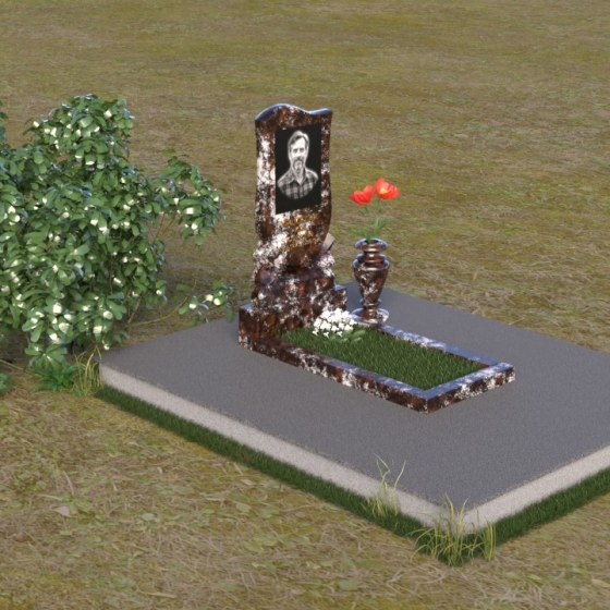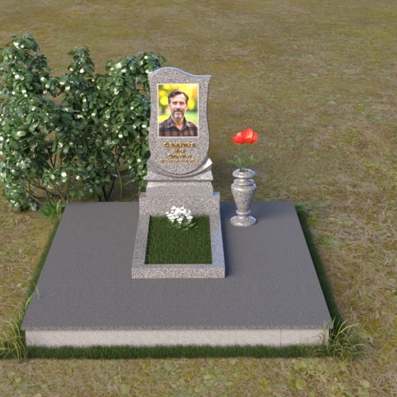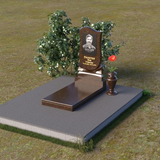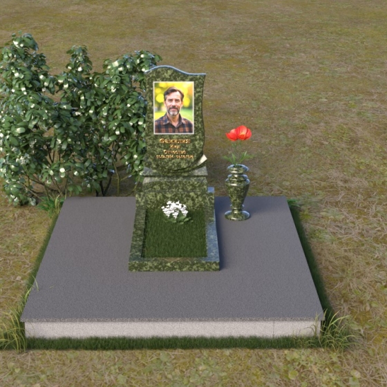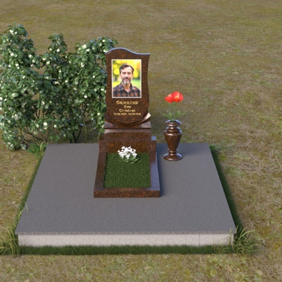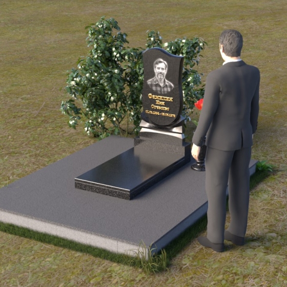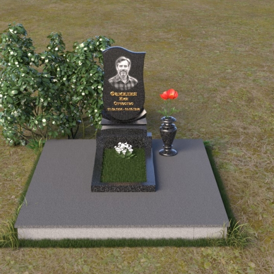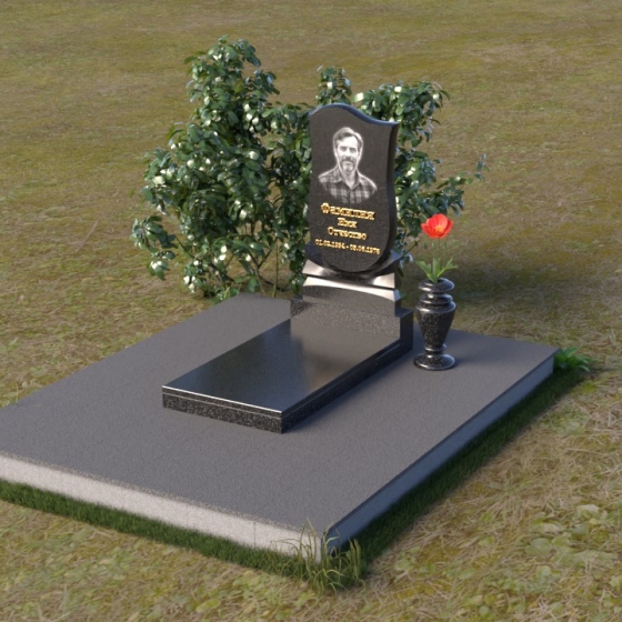 Форма стелы идеально подходит для размещения портрета усопшего. Мы рекомендуем использовать гравировку высокого качества, которая позволит передать мельчайшие детали и сохранить образ на долгие годы. Портрет может быть выполнен в различных стилях – от классического до современного, в зависимости от ваших предпочтений. Золотое тиснение имени и дат жизни добавит надгробию элегантности и торжественности. Небольшая гранитная плита, расположенная перед стелой, может служить местом для возложения цветов или установки лампадки. Ее полированная поверхность будет отражать свет и создавать атмосферу умиротворения и покоя. Ваза из черного гранита, выполненная в классическом стиле, гармонично дополнит композицию и позволит сохранить свежие цветы на протяжении долгого времени.