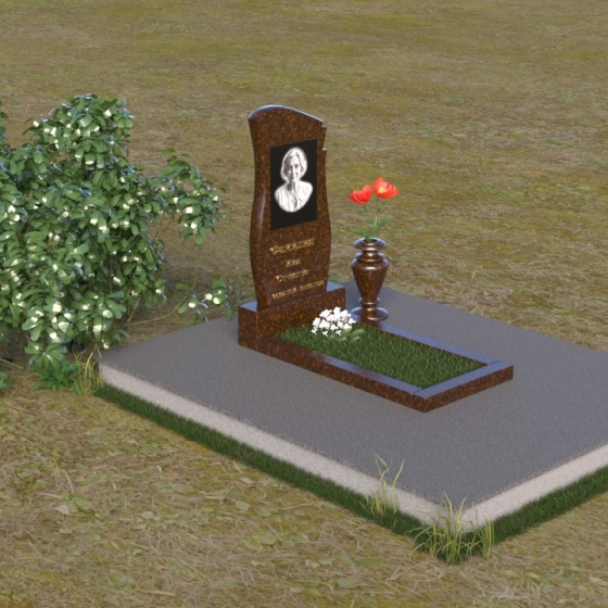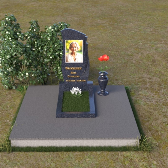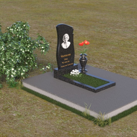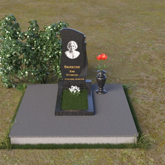 Этот гранитный монумент – не просто надгробие, это застывшая в камне память, выражение скорби и любви, облеченное в благородную форму. Мягкие, словно обточенные временем, линии верхней части памятника создают ощущение умиротворения и покоя. С одной стороны, мы видим строгую геометрию, с другой – плавные изгибы, напоминающие о жизненном пути, полном взлетов и падений. Верхняя часть памятника, подобно крылу ангела, слегка склоняется, словно оберегая покой усопшего. Полированная поверхность камня отражает свет, создавая ощущение глубины и вечности, в то время как резные элементы, обрамляющие портрет, добавляют монументу изысканности и индивидуальности. Контраст между зеркальным блеском и матовой фактурой углублений создает игру света и тени, подчеркивая мастерство исполнения и глубину замысла.