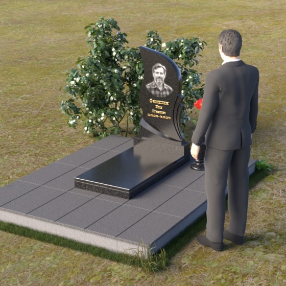 Плавные линии и сдержанная элегантность – вот что отличает это надгробие. Асимметричная форма стелы притягивает взгляд, а полированная поверхность словно зеркало отражает свет, создавая игру бликов и теней, подчеркивающую объем и глубину камня. В верхней части стелы располагается портрет, выполненный с высокой точностью и детализацией. Ниже – аккуратная гравировка с именем, датами жизни и теплыми словами.