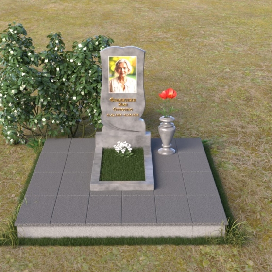 Эта мемориальная композиция – воплощение строгости и элегантности, способное выдержать испытание временем. В ее основе – массивная стела из полированного гранита, символизирующая незыблемость памяти и глубокое уважение. Плавные линии верхней части, словно арка, обрамляют портрет усопшего, создавая ощущение умиротворения и покоя. Изящные скошенные грани по бокам добавляют конструкции легкости и динамики, несмотря на ее монументальность.