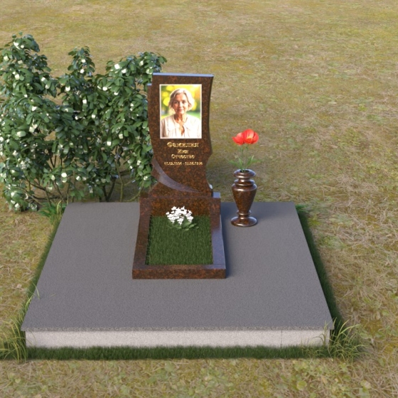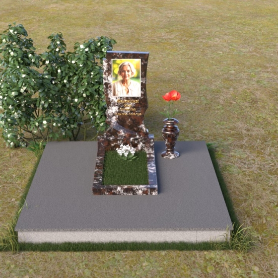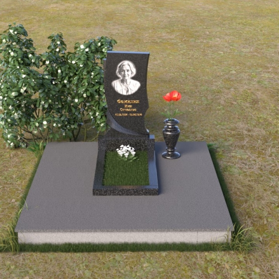 Волнообразная форма верхней части стелы символизирует жизненный путь человека, его взлеты и падения, радости и печали. Она напоминает о том, что жизнь – это непрерывное движение, поток, который рано или поздно заканчивается. Вместе с тем, эта форма выражает покой и умиротворение, которые обретает душа после смерти. Строгие прямые линии нижней части памятника олицетворяют стабильность и надежность, а темный цвет камня – вечность и незыблемость памяти. В целом, композиция памятника создает ощущение гармонии и завершенности, выражая глубокое уважение к усопшему и веру в вечную жизнь.