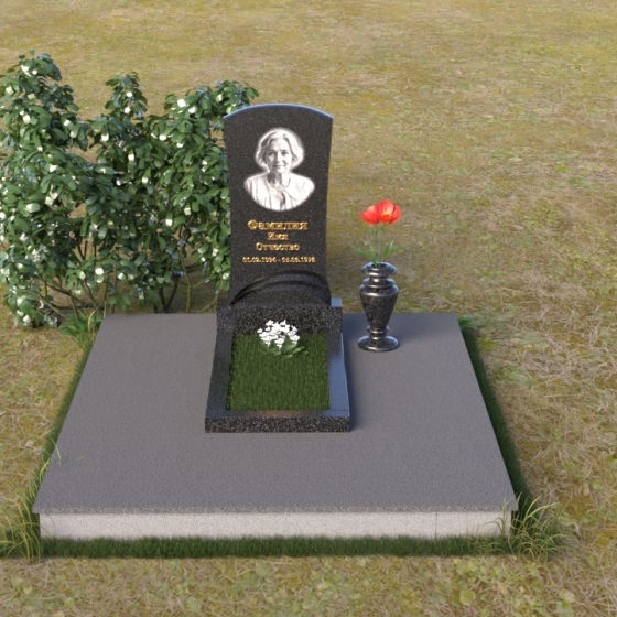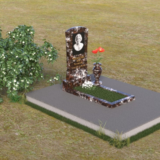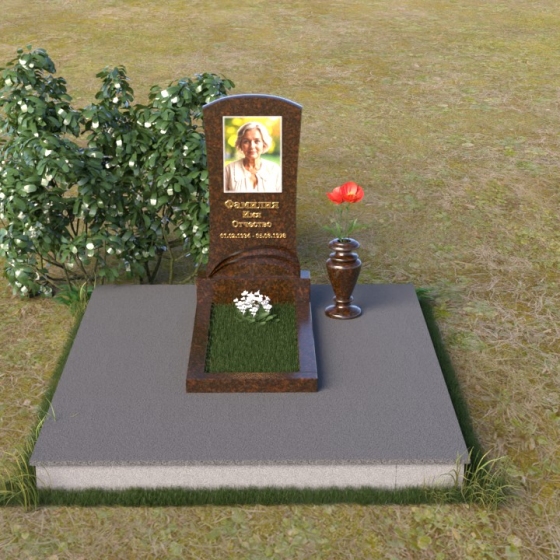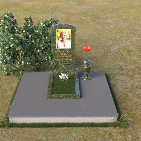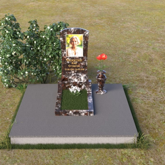 Форма стелы ПВ 119 предоставляет широкие возможности для размещения портрета усопшего и памятной надписи. Портрет может быть выполнен как в виде гравировки на камне, так и в виде фотокерамики, что позволяет максимально точно передать черты лица и создать реалистичный образ. Надпись, выполненная золотыми буквами, будет эффектно выделяться на фоне темного камня, делая слова памяти еще более значимыми. Благодаря своей компактной форме, памятник идеально подходит для небольших участков, не загромождая пространство и оставляя место для цветов и других знаков внимания. На полированной поверхности постамента можно установить вазу для живых цветов, которая станет ярким акцентом и символом вечной любви и скорби.