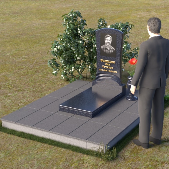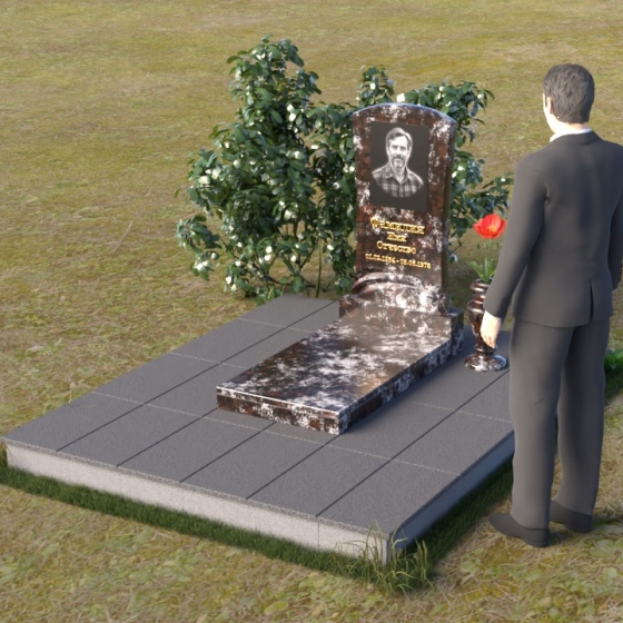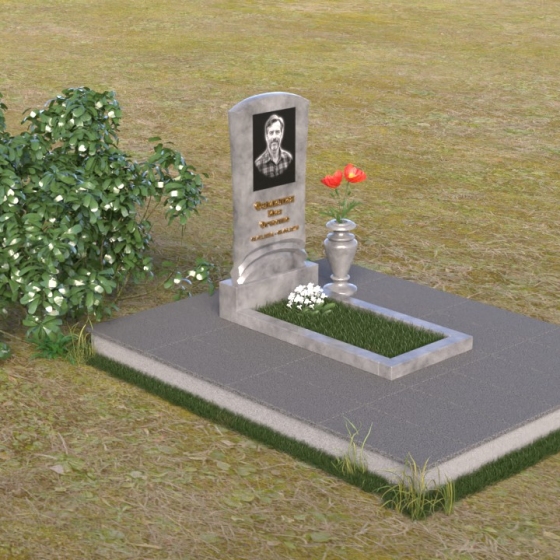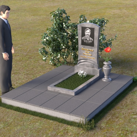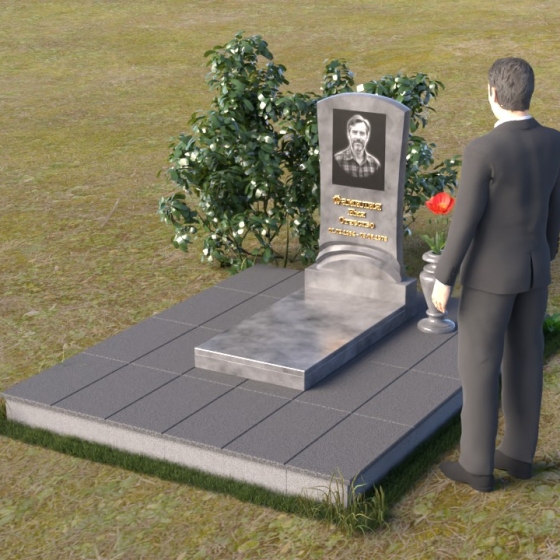 Геометрия модели продумана до мелочей. От мягкого изгиба верхней части стелы, напоминающего спокойную волну, до строгих линий подставки, все элементы гармонично сочетаются друг с другом. Плавный переход от стелы к подставке символизирует жизненный путь, полный взлетов и падений, но неизменно стремящийся к покою. Горизонтальная плита, расположенная у основания, создает ощущение стабильности и надежности, словно незыблемый фундамент памяти.