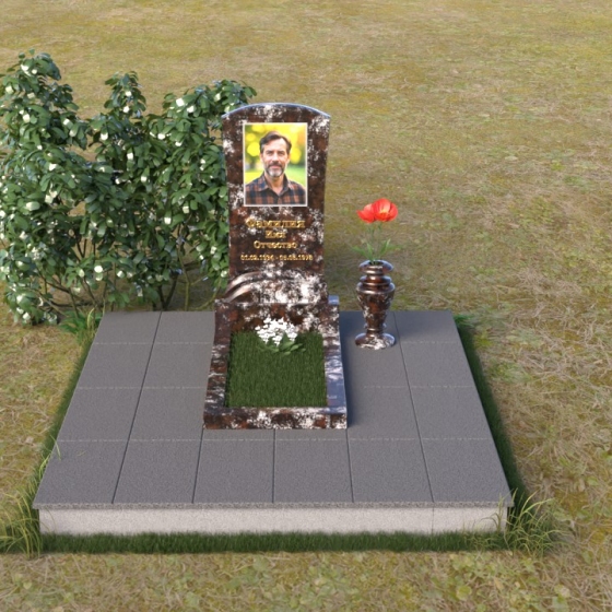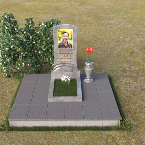 Этот памятник – символ вечности и покоя. Его плавные линии и изящные формы создают ощущение гармонии и умиротворения. Стела памятника ПВ 122, словно застывшая волна, бережно хранит память об ушедшем. Мягкий изгиб верхней части, с закругленными краями, придает композиции завершенность и легкость. В верхней части стелы располагается портрет, выполненный с высокой точностью, словно взгляд из вечности, запечатленный в камне. Ниже располагается надпись с именем и датами жизни, выполненная элегантным шрифтом, который словно выгравирован самой памятью. Нижняя часть стелы плавно переходит в подставку, образуя единое целое. Подставка, в свою очередь, служит основанием для горизонтальной плиты, создавая законченный и лаконичный образ. Рядом с памятником располагается ваза, выполненная в том же стиле, что и остальная композиция, предназначенная для живых цветов, как символ неувядающей любви и памяти.
