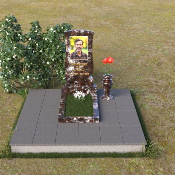 Геометрия модели продумана до мелочей. От основания, выполненного в виде прямоугольной плиты, переходящей в надгробную плиту с зеркальной полировкой, до изящного изгиба верхней части стелы – каждый элемент работает на создание гармоничного и запоминающегося образа. Плавные линии смягчают строгость камня, а контраст полированных и матовых поверхностей придает глубину и объем. Маленькая ваза, выполненная из того же гранита, что и остальная композиция, довершает образ, позволяя разместить живые цветы в память об ушедшем.